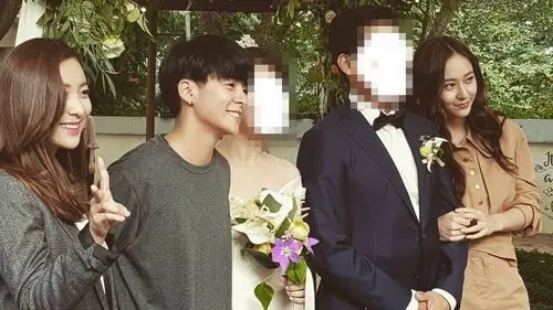 In the post, there were pictures of f(x) members attending a couple's wedding, assumed to be the group's manager.