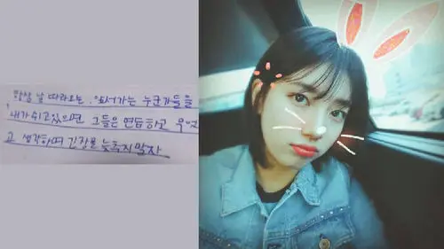 She also wrote a caring note for her fans on her notebook, "Think about fans".