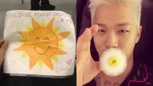 In the letter, there is a drawing of the sun('taeyang' in Korean) with a smiley face, with a short message, "TAEYANG ALWAYS SHINE ON ME -Chinly".