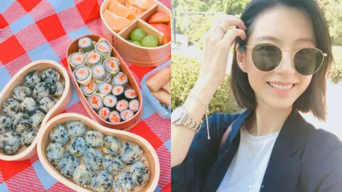 On October 17, Park Soo-jin posted a picture on her Instagram account saying, "The weather was so nice that I made these gimbap, and went on a picnic."