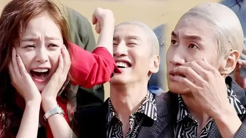 They each took the turn and did a finger flicking battle at each other's forehead. First, it was Lee Kwang-soo's turn, to do a finger flick at Jeon So Min's forehead. Merciless Kwang-soo flicked his finger on So Min's head and So Min yelled at him for it.