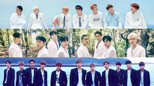 (Credit= SBS funE, 'bangtan.official' 'weareoneEXO' 'WannaOne.official' Facebook)