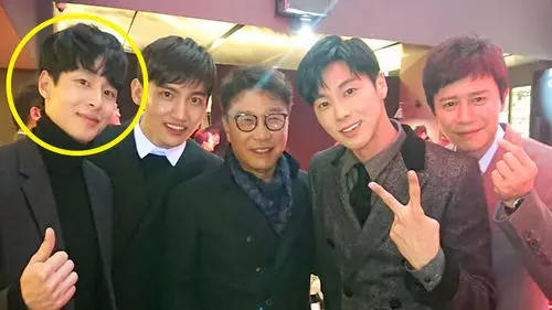 In the photo, Kim Chung Jae was standing next to SM Entertainment's record executive named Lee Soo-man, K-pop boy group TVXQ's U-Know Yunho, Max Changmin, and actor Kim Min Jong.