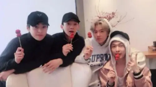 On December 14, LAY posted a photo of himself with EXO-CBX members(CHEN, BAEK HYUN and XIUMIN). Along with the photo, he wrote the caption that reads, "This is Beijing's Bingtanghulu(candied fruit). It's been a long time."