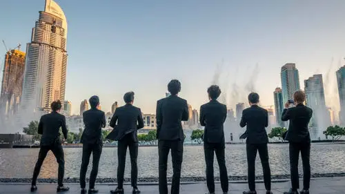 K-pop boy group EXO recently made their very first visit to Dubai. On January 16 local time, EXO members attended the Dubai Fountain Show, as this year's show features EXO's latest hit 'Power'. EXO received much praise and recognition from local media, and the members shared their blissful moments during their trip to Dubai. First of all, CHANYEOL shared a photo of EXO watching the fountain show and wrote, "I am so proud of us". Seven members of EXO were also spotted in front of Dubai's landmark Burj Khalifa in sleek suits. SEHUN and BAEKHYUN also shared the photos of EXO riding a kart at Dubai's sand dunes.