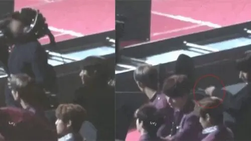 In a video clip of 'The 27th Seoul Music Awards' posted on an online community, JUNGKOOK helped a camera operator occupied with filming performances on the stage by adjusting the wires for him.