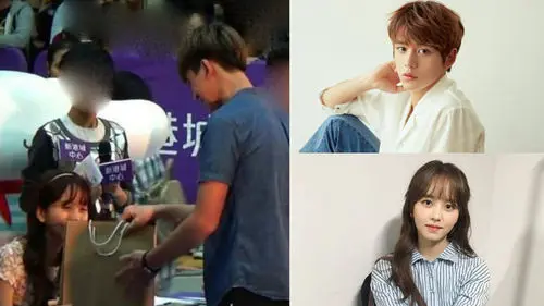Kim So Hyun smiles at him and signs her autograph while LUCAS stands shyly looking at the celebrity just like all other fans.