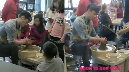 On March 7, an online community released photos of T.O.P making ceramics with clay for kids at Yongsan Crafts Museum newly opened in February.