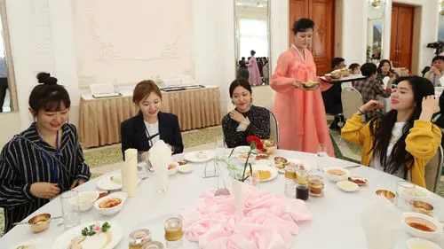 K-pop girl group Red Velvet, Girls' Generation's member Seohyun, singer Baek Z Young and many other members of the South Korean art troupe were spotted enjoying the original Pyongyang naengmyeon (cold noodles) in Pyongyang, North Korea.On April 2, they went to have a meal at a famous restaurant in North Korea called Okryu Restaurant.