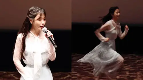 When IU was about to run, one of her fans shouted, "Take off your shoes! It's dangerous."