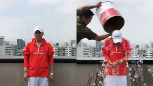 From the unveiled photo, a spilled bucket of ice is on the ground, and he left a concise comment, saying, "I did it".