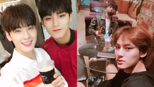 On June 14, MINGYU shared a picture of himself with Cha Eun-woo on his social media account.Along with the picture, he wrote, "2018/6/13: 97-line in a cafe."