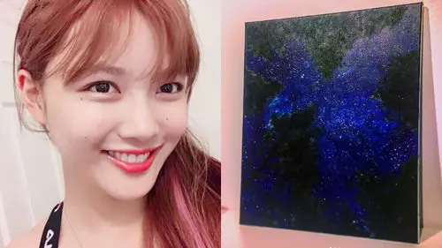 On June 15, Kim Yoo Jung shared two pictures of her painting along with one screenshot.In the caption, she wrote, "I painted them while listening to 'Memories'. These images were in my head for a long time. I was finally able to get them out."The colors in the two paintings makes you feel like you are in space, and it is hard to stop admiring them.