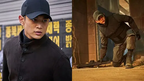 These pictures suggest that MINHO has successfully turned himself into the highly-trained member of a special police unit.