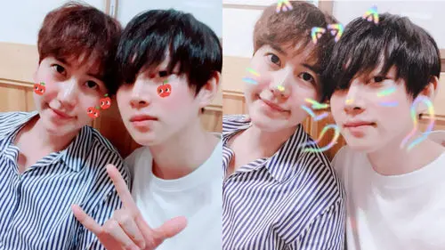 On July 22, HeeChul shared two pictures of himself taken with KyuHyun while hanging out together. In the pictures, the two sit side by side and smile at the camera sitting, wearing simple yet stylish shirts.