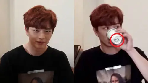Without any changes in his facial expression, Yook Sungjae commented, "We have been ranking high on the real time chart today. Is it because we are doing a live broadcast today?", then lifted his paper cup as if he was trying to take a sip of a drink.