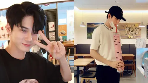 One of the fans sponsored a tea cafe where fans could get Ong Seong Wu's printed items. Ong Seong Wu came to the cafe on the last day of the event, in order to receive the free cup holder with his photo on it.