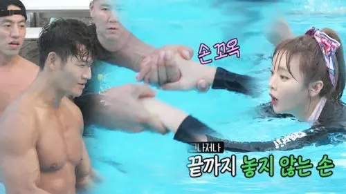 As Hong Jin Young did not know how to swim, Kim Jong-kook kindly taught her how to swim, and they played some games together.