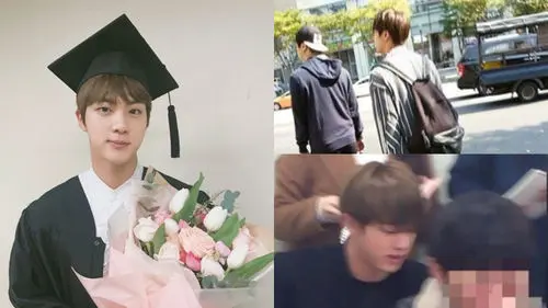 Recently, photos of JIN spotted at his university have been circulating in multiple online communities. Although it has been over a year since JIN graduated from college, many people expressed how surprising it is to see him casually enjoying his student life. In the released photos, JIN is sitting in a classroom with his classmates, discussing things with the professor, wandering around the campus―just like other students. Fans commented, "The superstar's student duty! I respect his diligence.", "He must've been really tired, like come on, BTS' jam-packed schedule and college life at the same time?", "Wish I had a classmate like Seokjin (JIN's real name).", and more. Back in February 2017, JIN graduated from Konkuk University with a bachelor's degree in Film and Animation.