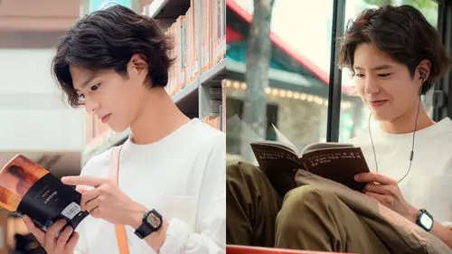 In the photos, Park Bo Gum is enjoying a book at all places he goes, seeming totally in love with books.