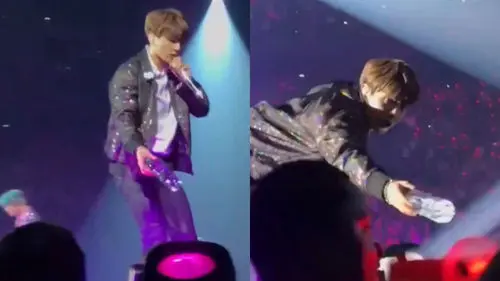 After taking a glimpse, JUNGKOOK's face turned serious, then he suddenly started walking towards the area with a water bottle in his hand.