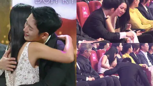 When they were receiving the award, the host Jeon Hyun Moo said, "Why don't you guys say a word to congratulate one another on receiving the award?"