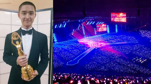 D.O. continued, "In the midst of our concert, a staff suddenly made an announcement saying that I had won the Best Rookie Male Actor award through the in-ear monitors. It was late after the concert, but I hurried to the venue where the awards ceremony took place and got my trophy."