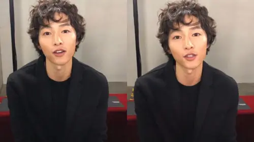 Upon seeing this video, fans reacted, "Joong Ki oppa looks like a cute little puppy with that hairstyle!", "Wow, I'm totally loving his look today.", "I can't believe he is in his 30s! He looks so young here!", and so on.