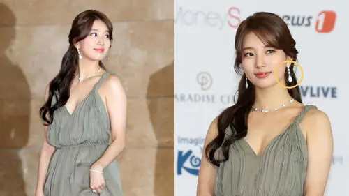 On November 28, Suzy attended '2018 Asia Artist Awards (2018 AAA)' held at Namdong Gymnasium, Incheon. For the special event, Suzy chose a beautiful light grey-colored chiffon dress that compliments Suzy's elegant yet girlish charms. However, what caught the eyes of the public was not her dress, but the jewelry that she wore to perfect her look.