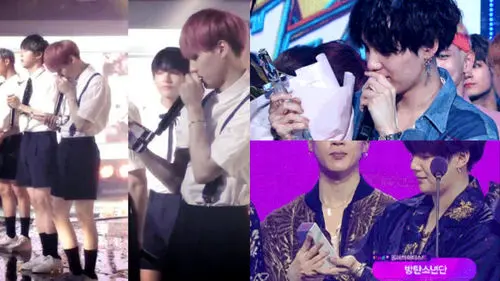 SUGA from K-pop boy group BTS has an interesting habit of admiring a trophy for a long time when he holds it in his hand, and there seems to be a reason behind this.