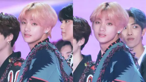 On December 25, BTS made appearance at SBS' year-end music festival '2018 Gayo Daejun' which was held at Gocheok Sky Dome, Seoul. On this day, BTS dominated the stage with six of its tracks 'No More Dream', 'Boy In Luv', 'DOPE', 'FIRE', 'DNA', and 'IDOL'. After the festival, a few pictures and the videos of V went viral online since his beauty that day was beyond compare, and he looked like he could hypnotize everyone with just a snap of his fingers. His pink hair and color contacts made him appear like he just popped out of romantic comics, and his fans could not keep their eyes off of him not even for a second.
