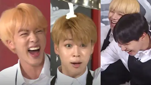 In this episode, BTS members had divided themselves into Boxing (JUNGKOOK and JIN), 95s (V and JIMIN), and Rhef (J-HOPE, RM, and SUGA) teams for a cooking competition.Before the actual competition began, BTS was informed that a game was prepared to decide which teams would get to pick the ingredients first.