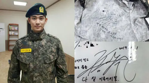 The pictures were of Kim Soo Hyun's autographs and messages that he had written to his fellow soldiers on the first and second day of this year.