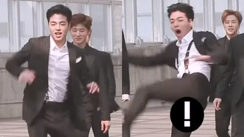 In the video, JU-NE is seen doing a 540 kick while walking with his fellow members side by side to the next filming location.