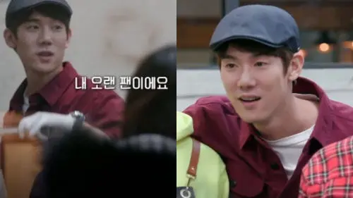 When one fan walked in, Yoo Yeon Seok noticed her right away and said, "Hey! Welcome." Then he introduced her to everyone at the site by saying, "She one of my oldest fans." Whilst serving a french toast which his fan ordered, he added in his sweet voice, "Bon appetite."