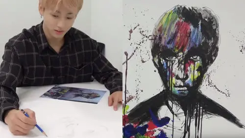 The video showed JUNGKOOK trying to replicate a painting from one of the teaser films titled 'WINGS Short Film #1 BEGIN' for the group's second full album 'WINGS' in 2016.