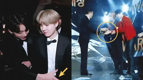 Recently, a thread titled 'JUNGKOOK who holds on for dear life' garnered attention online. In the post, there were a few clips of JUNGKOOK which clearly showed a pattern of his behaviors. JUNGKOOK waited until the award presenter notices him and shakes his hand, although the presenter ends up giving him flowers instead of a handshake when he noticed him. Also, JUNGKOOK does not mind waiting a few more seconds if he could put that little chocolate ball in his mouth. JUNGKOOK must be a huge fan of handshakes since he even blocked SUGA's way at the '61st Annual GRAMMY Awards' to shake the hands of someone who was standing in front of him. But unfortunately, it seems like his patience does not always yield the outcome he wants.