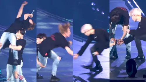 At the end of the concert, JUNGKOOK and V decided to do something special for JIN.