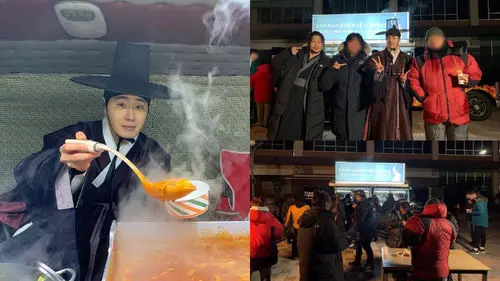 On February 20, Jung il Woo who is currently leading SBS' drama 'Haechi' with his transcendent acting skills warmed the hearts of the public with a considerate behavior he has shown at the filming site. Jung il Woo prepared a snack track that could feed 200 people for the drama's staff members and his co-stars who have been working hard despite the cold and rainy weather. Later it was revealed that Jung il Woo even picked the menu himself despite his hectic schedule. The snack truck Jung il Woo brought to the site was filled with love and different kinds of foods including hot broth and tteok-bokki (stir-fried rice cakes) that could keep them warm through the cold night. A source from Jung il Woo's management agency said, "He always worried about the staff members who have been working hard despite this cold weather. The staff and cast loved his little gesture, so he is very satisfied and delighted." In the unveiled photos, Jung il Woo is handing out tteok-bokki himself in his Hanbok (Korean traditional attire) and Gat (Korean traditional hat) and cutely posing in front of a camera with his staff members. The production team said, "When it comes to lightening up the mood on set, Jung il Woo is the best. We had some concerns because we had to film a rain scene, but we were able to wrap it up happily thanks to his good heart."