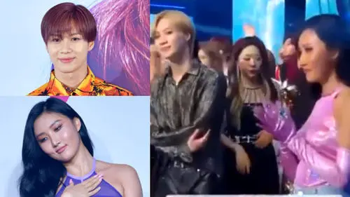 On February 15, the production team of KBS' music show 'Music Bank' captured a hilarious moment of TAEMIN and Hwa Sa trying to sneak out of the stage after the show's award ceremony.