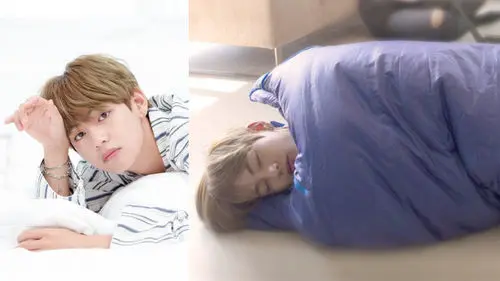 In the photo, V is sound asleep in a large purple sleeping bag.