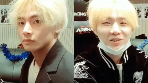 V and SUGA of K-pop boy group BTS put a smile on their fans' faces during a live broadcast.
