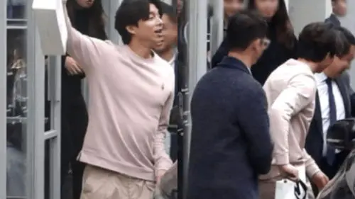 The video showed Gong Yoo coming out of a store with a large paper bag in his hand.