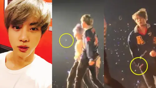 While performing 'DNA', JIN saw his fellow member JIMIN's earring flying off from his ear.