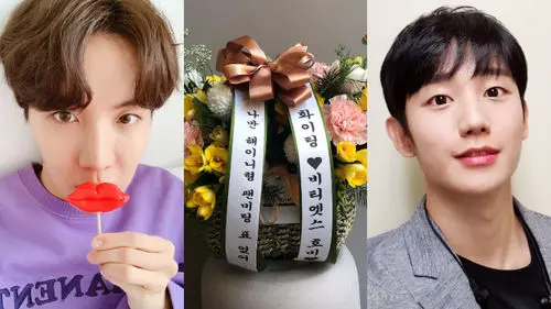 J-HOPE of K-pop boy group BTS showed his support to actor Jung Hae In by sending a flower basket to his recent fan meeting.