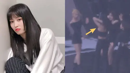 During the rehearsal of the group's latest title track 'FANCY' performance, MOMO got a problem with her stage outfit.