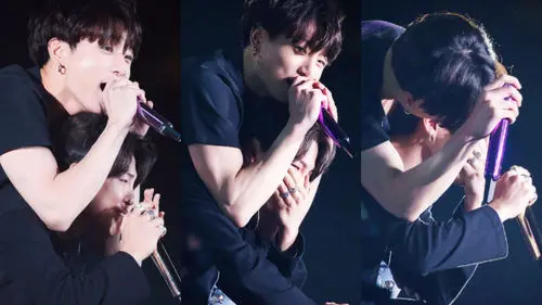 At one point, JIMIN flopped down onto the stage and wiped away his tears from his face.