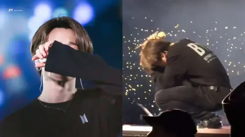 During the two-day concert, JIMIN was seen crying both days―dropped down to the stage and covered his face with both of his hands.