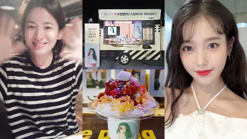 The snack truck was decorated with photos of IU and it said, "To pretty Ji-eun (IU's real name) ♥ and all staff working hard for 'Hotel del Luna'. Hope this would give you some energy! From Song Hye Kyo"