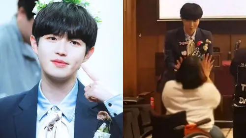 When one fan showed up in a wheelchair, Kim Jae Hwan immediately got up, and went down the stage instead of letting her climb up the stairs in her wheelchair.